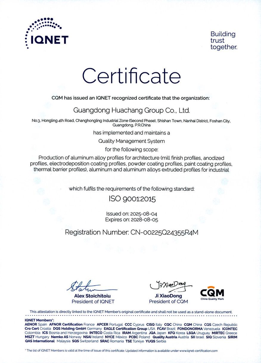 Guangdong Huachang Group Co., Ltd. adheres to a strict quality management system. According to the domestic and international standards, the group formulates and implements more stringent internal control standards. The company has passed the GB/T 19001 (ISO 9001) quality management system, GB/T 24001 (ISO 14001) environmental management system, ISO 50001 and RB/T 117 energy management system, GB/T 45001 (ISO 45001) occupational health and safety management system, IATF 16949 automotive management system, ISO/IEC 17025 national laboratory accreditation, good behavior of standardization, adoption of international standard products, green / low-carbon / energy-saving products and other certifications. In accordance with the quality management of "To be your sincere friend, to be your best Aluminium partner", Huachang is improving work efficiency and operation efficiency continuously.